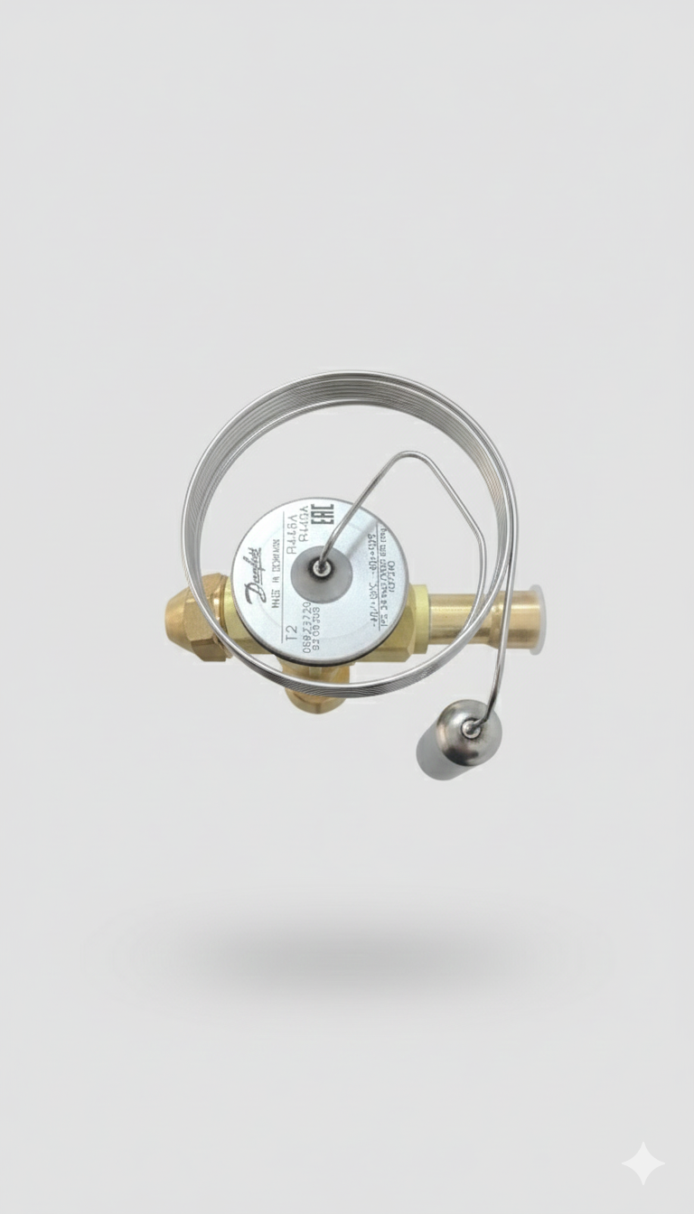 Produsul este livrat ca valvă completă (corp + element termostatic) și utilizează egalizare externă a presiunii (seria TS2), ceea ce asigură un control corect al supraîncălzirii în instalații frigorifice complexe.